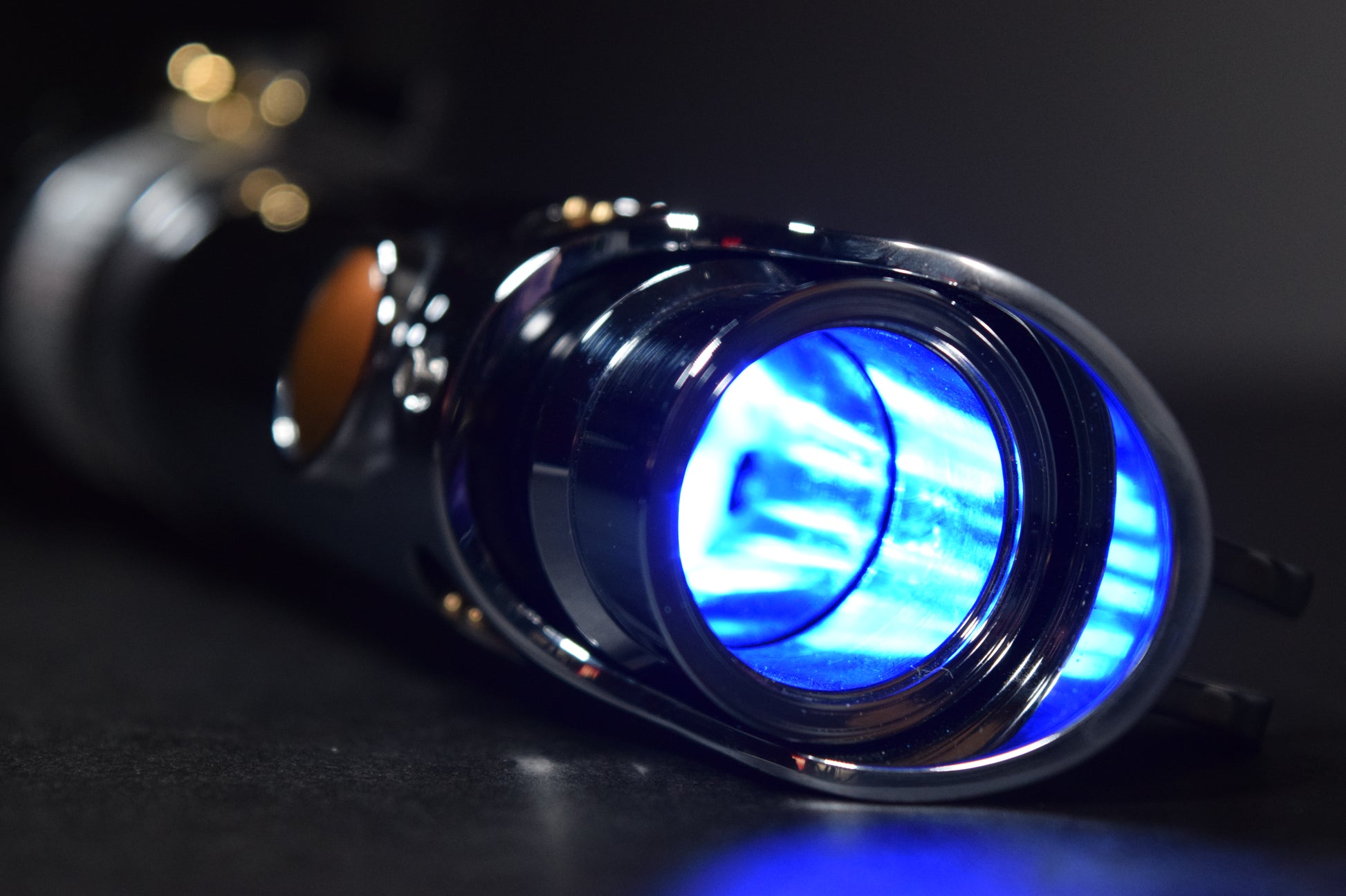 Neopixel sabers have hundreds of LEDs inside the blade to allow for complex blade animations and increased brightness. Neopixel technology allows for complex blade effects like scrolling up and down when the saber is ignited or retracted, blaster deflection, saber lockup, tip drag, and many others. Neopixel blades also allow for blade styles and animations like Unstable blades and Fire blades to replicate damaged sabers like Kylo Ren.